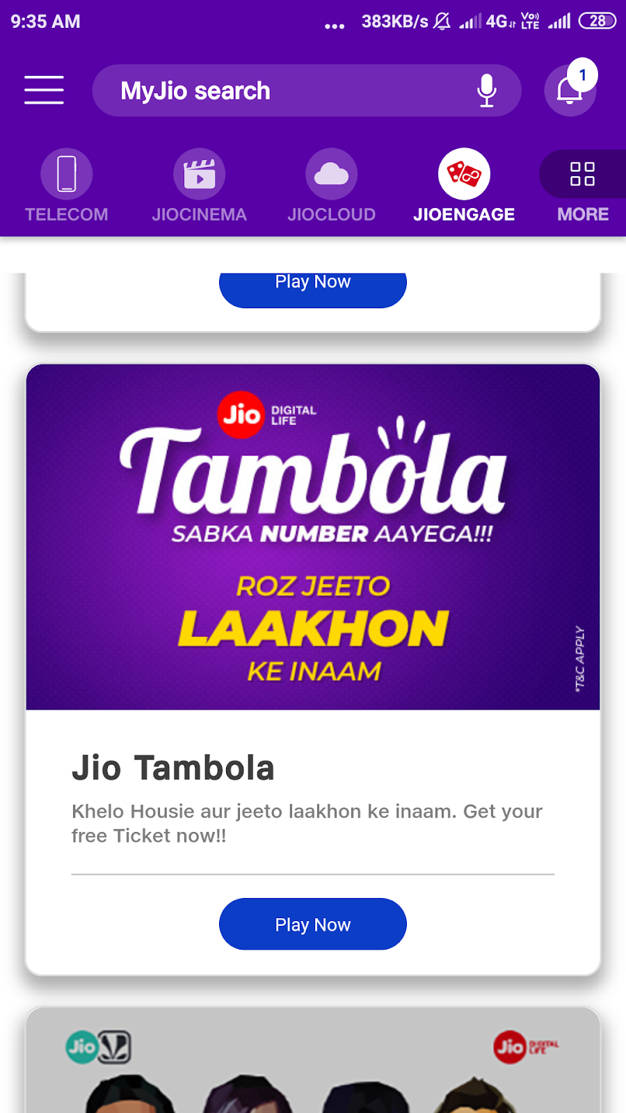 4 step ⏩ Now ClickJio Tambola PLAY NOW